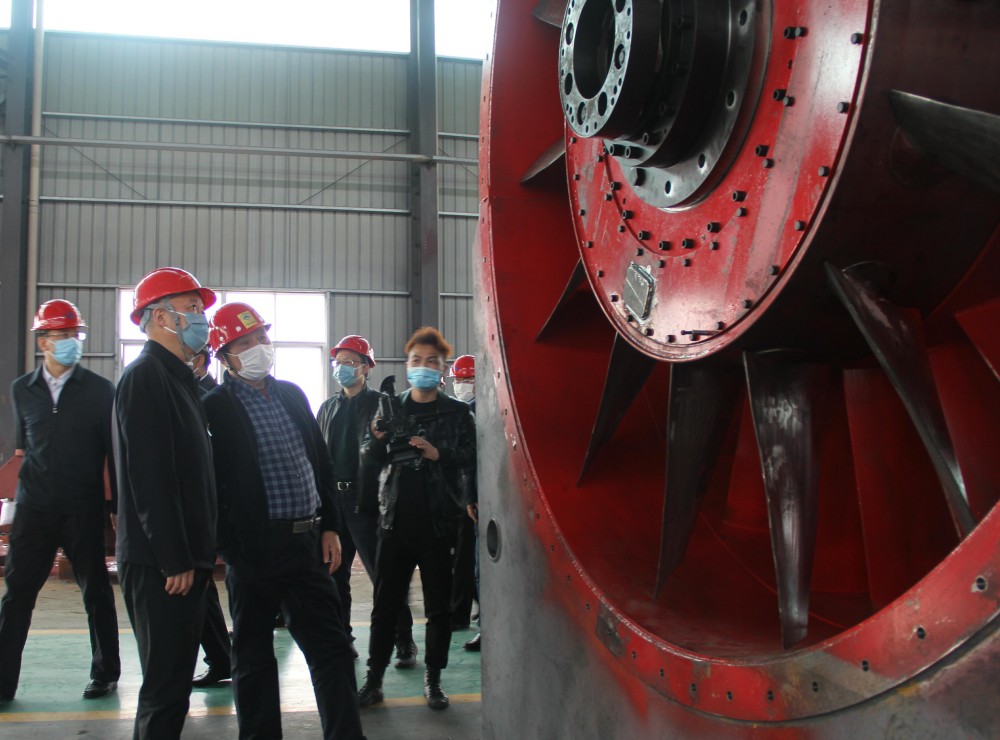 (王江平副部長在鼓壓風機制造事業(yè)部了解公司產品)